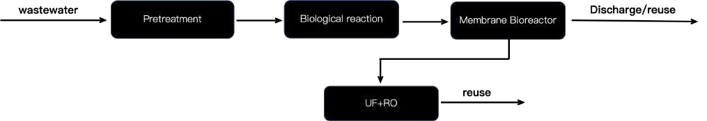 - Industrial wastewater treatment (MBR + advanced reuse treatment)